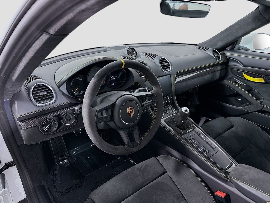 Certified. Recent Arrival! White 2020 Porsche 718 Cayman GT4 4.0L H6 DOHC 24V LEV3-ULEV125 414hp 6-Speed Manual RWD 982810 718 Cayman GT4 $99,200 58 Leather/Alcantara® Interior in Black with Yellow Stitching $2,160 0Q White XYB Fuel Cap with Aluminum Look Finish $160 QR5 Chrono Package with Preparation for Lap Trigger $550 450 Porsche Ceramic Composite Brakes (PCCB) $8,000 XDK Wheels Painted in Satin Black $600 887 Steering Wheel with 12 O'Clock Marker in Yellow $330 P07 Adaptive Sport Seats Plus (18-way) $2,640 573 2-Zone Automatic Climate Control $770 342 Seat Heating $530 583 Smoking Package 581 Luggage Net in Passenger Footwell XHN Seat Belts in Racing Yellow $360 750 Stitching in Deviated Color $1,500 EKG Interior Trim in Carbon Fiber i.c.w. Leather Interior $790 QH1 Voice Control 9VL BOSE® Surround Sound-System $990 9WT Apple CarPlay® incl. Siri® $360 P40 Navigation including Porsche Connect $2,320 XEW Bi-XenonTM Headlights in Black with Porsche Dynamic Light System (PDLS) $1,500 630 Light Design Package $350 748 Power Folding Exterior Mirrors $330 P13 Auto-Dimming Mirrors with Integrated Rain Sensor $700, Adaptive Sport Seats Plus (18-way), 2-Zone Automatic Climate Control, Apple CarPlay w/Siri, Auto-Dimming Mirrors, Bi-Xenon Headlights in Black w/PDLS, BOSE Surround Sound System, Chrono Package w/Preparation for Lap Trigger, Fuel Cap w/Aluminum Look Finish, Interior Trim in Carbon Fiber w/Leather Interior, Light Design Package, Luggage Net in Passenger Footwell, Navigation w/Porsche Connect, Porsche Ceramic Composite Brake, Power Folding Exterior Mirrors, Seat Belts in Racing Yellow, Seat Heating, Smoking Package, Steering Wheel w/12 O'Clock Marker in Yellow, Stitching in Deviated Color, Voice Control, Wheels Painted in Satin Black.