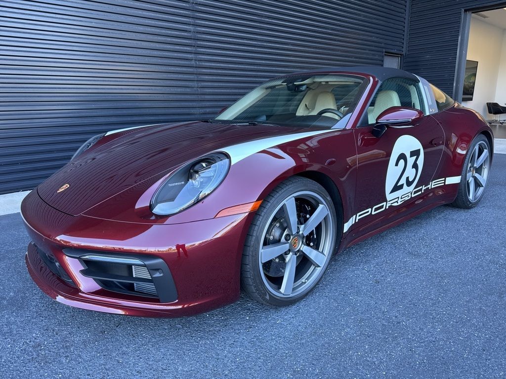Certified. Recent Arrival! CARFAX One-Owner. Cherry Metallic 2021 Porsche 911 Targa 4S Heritage Design Edition 3.0L H6 Turbocharged DOHC 24V LEV3-ULEV70 443hp 8-Speed Porsche Doppelkupplung (PDK) AWD Full Front PPF 992560 911 Targa 4S Heritage Design Edition (MY21) $180,600 ES Heritage Design Leather Interior in Black and Atacama Beige R0 Cherry Metallic 2D1 SportDesign Package $4,890 VR4 SportDesign Side Skirts $1,290 6XV Power Folding Exterior Mirrors $370 UD1 Under Door Puddle Light Projectors $160 AYZ Individual Race Number for Heritage Design Edition - Deep Sea Blue $680 1P7 Porsche Dynamic Chassis Control (PDCC) $3,170 0P8 Sport Exhaust System incl. Tailpipes in Silver $2,200 1LX Porsche Ceramic Composite Brakes (PCCB) with Calipers in High Gloss Black $8,970 1N3 Power Steering Plus $280 0N5 Rear Axle Steering $2,090 2UH Front Axle Lift System $2,770 1NU Wheels Painted in Satin Platinum 2V4 Ionizer $350 QQ2 Ambient Lighting $580 Q1J Adaptive Sport Seats Plus (18-way) with Memory Package $2,670 2ZC Heated Steering Wheel $280 QE1 Storage Package AVV Fuse Box Covers in Leather $390 AVC Air Vent Surround and Air Vent Slats in Leather $2,070 ATG Inner Door-Sill Guards in Leather 7F4 PDK Gear Selector in Aluminum $750 P19 Pedals and Footrest in Aluminum $630 9VJ Burmester® High-End Surround Sound System $5,560 BHE Preparation for Heritage Design Edition AYJ Preparation for Limitation Number 9R1 Night Vision Assist $2,540 7Y1 Lane Change Assist (LCA) $1,060 KA6 Surround View $1,430 3V1 Porsche InnoDrive incl. Adaptive Cruise Control (ACC) and Active Lane Keep (ALK) $3,020 ZGA Local Option - R $550 Total Retail Vehicle Price: $229,350 Delivery, Processing and Handling Fee: $1,350 Total of Charges & Taxes: $1,350 Total Retail Price*: $230,700, AWD.
