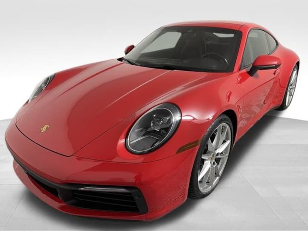 Certified. CARFAX One-Owner. Guards Red 2024 Porsche 911 Carrera 3.0L H6 Turbocharged DOHC 24V LEV3-ULEV70 379hp 8-Speed Porsche Doppelkupplung (PDK) RWD P3R Premium Package $5,350 4D3 Ventilated Seats (Front) QE1 Storage Package 9VL BOSE Surround Sound System 8IS Porsche Dynamic Light System Plus (PDLS+) 6XV Power Folding Exterior Mirrors 7Y1 Lane Change Assist (LCA) KA6 Surround View QQ2 Ambient Lighting 3FD Electric Slide/Tilt Sunroof $1,560 1NP Wheel Center Caps with Colored Porsche Crest $190 46I 20"/21" Carrera S Wheels $1,790 Q2J Power Sport Seats (14-way) with Memory Package $2,110 2ZC Heated Steering Wheel $280, RWD, 14-Way Power Sport Seats w/Memory Package, ABS brakes, Alloy wheels, Ambient Lighting, BOSE Surround Sound System, Electric Slide/Tilt Sunroof, Electronic Stability Control, Front dual zone A/C, Front Ventilated Seats, Heated door mirrors, Heated front seats, Heated Steering Wheel, Illuminated entry, Lane Change Assist (LCA), Low tire pressure warning, Porsche Communication Management, Porsche Dynamic Light System Plus (PDLS+), Power Folding Exterior Mirrors, Premium Package, Remote keyless entry, Storage Package, Surround View, Traction control, Wheel Center Caps w/Colored Porsche Crest, Wheels: 20" Front/21" Rear Carrera S.