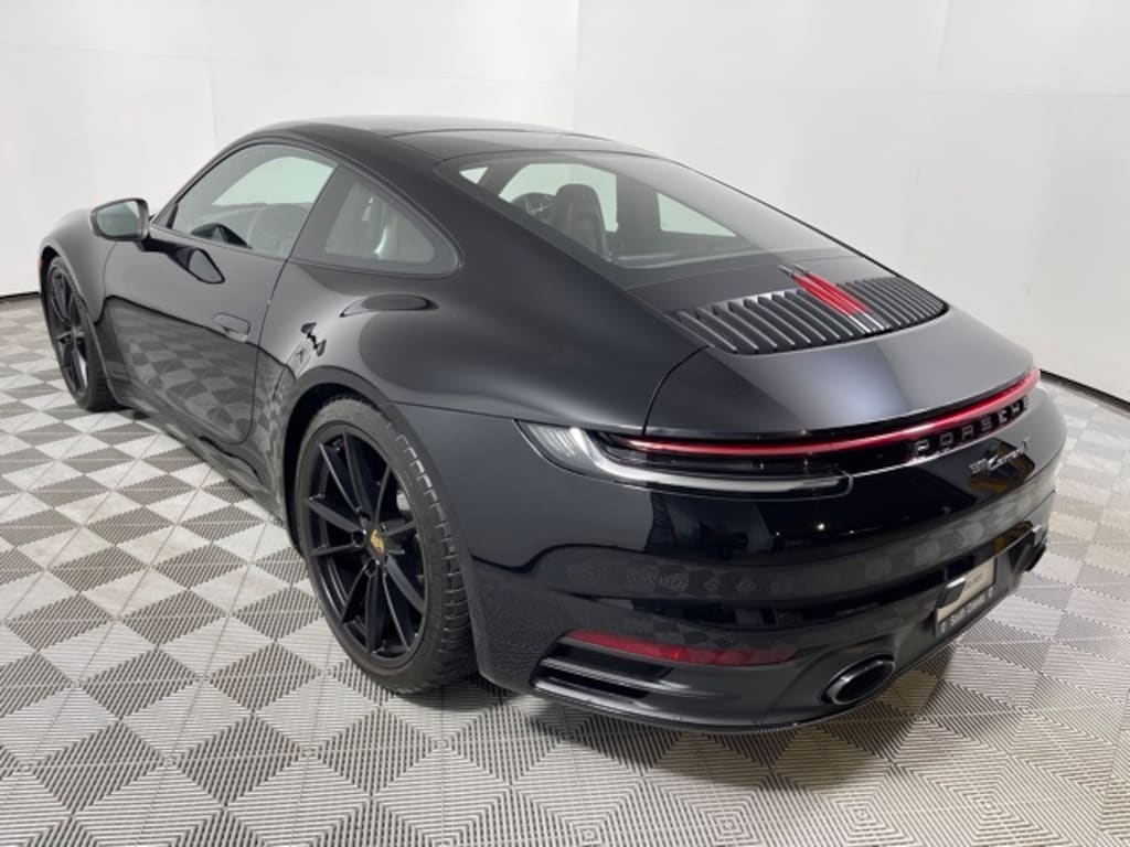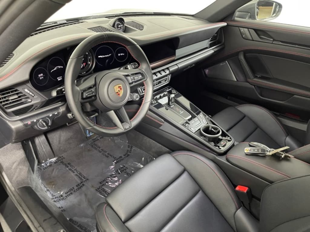 Certified. CARFAX One-Owner. Black 2024 Porsche 911 Carrera T 3.0L H6 Turbocharged DOHC 24V LEV3-ULEV70 379hp 8-Speed Porsche Doppelkupplung (PDK) RWD YA Leather Interior in Black with Checkered Sport-Tex Seat Centers $4,530 A1 Black 3FD Electric Slide/Tilt Sunroof $1,560 G1F 8-speed Porsche Doppelkupplung (PDK) 0I2 Extended Range Fuel Tank (23.7 gal.) $230 1NX Wheels Painted in Satin Black 6RD Deviated Stitching Interior Package $3,650 Q1J Adaptive Sport Seats Plus (18-way) with Memory Package $2,820 S38 Rear Seats 2PJ Heated GT Sport Steering Wheel $280 4D3 Ventilated Seats (Front) $840 6E2 Center Console Lid with Porsche Crest $340 9VJ Burmester High-End Surround Sound System $5,560 24901 Dashboard with Deviated Stitching - Guards Red 24905 Rear Side Panel with Deviated Stitching (Coupe Only) - Guards Red 24906 Center Console Lid with Deviated Stitching - Guards Red 24907 Knee Pad with Deviated Stitching - Guards Red 25889 Door Panel with Deviated Stitching - Guards Red 00480 Color Selection for Stitching in Deviated Color - Guards Red 8IS Porsche Dynamic Light System Plus (PDLS+) $1,270 6XV Power Folding Exterior Mirrors $370 7Y1 Lane Change Assist (LCA) $1,060 KA6 Surround View $1,430 QQ2 Ambient Lighting $580, ABS brakes, Alloy wheels, Electronic Stability Control, Front dual zone A/C, Heated door mirrors, Heated front seats, Illuminated entry, Low tire pressure warning, Navigation System, Porsche Communication Management, Remote keyless entry, Traction control.