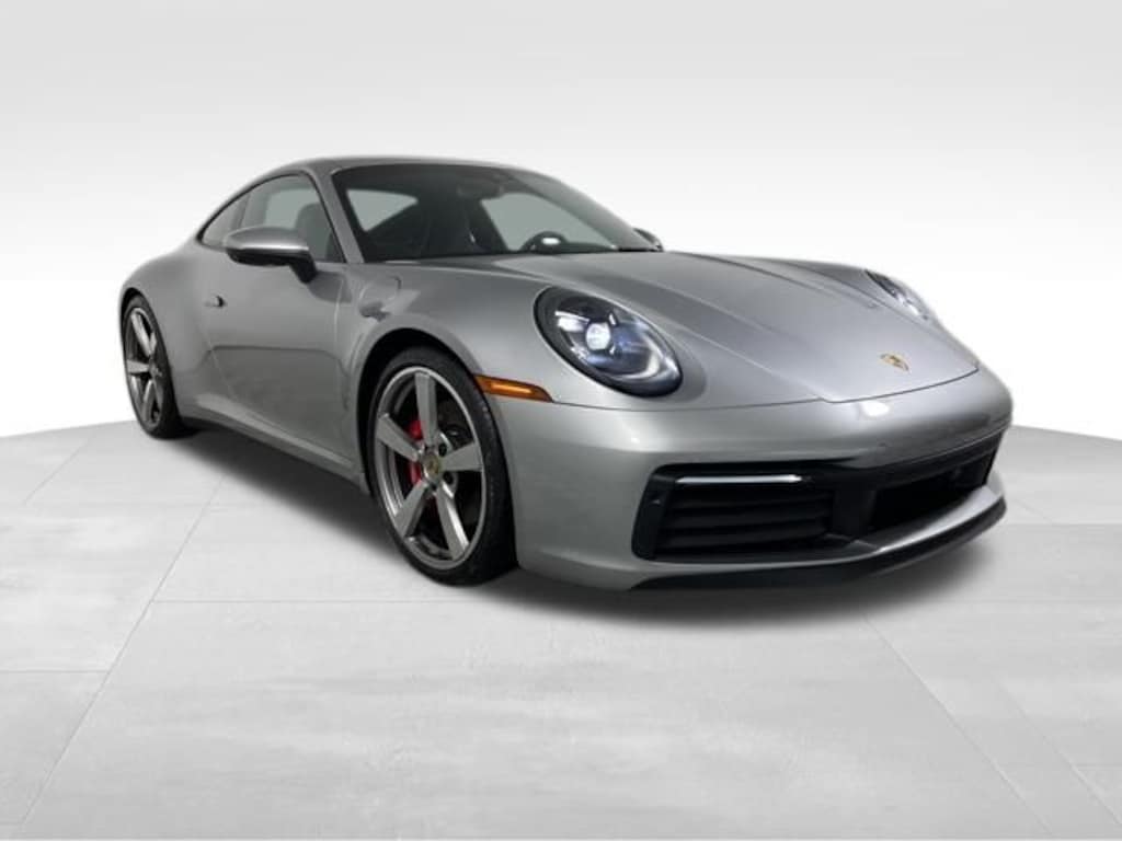 Certified. GT Silver Metallic 2024 Porsche 911 Carrera S 3.0L H6 Turbocharged DOHC 24V LEV3-ULEV70 443hp 8-Speed Porsche Doppelkupplung (PDK) RWD P3R Premium Package $5,350 4D3 Ventilated Seats (Front) QE1 Storage Package 9VJ Burmester® High-End Surround Sound System $3,980 8JU LED-Matrix Design Headlights in Black incl. Porsche Dynamic Light System Plus (PDLS+) $2,740 6XV Power Folding Exterior Mirrors 7Y1 Lane Change Assist (LCA) KA6 Surround View QQ2 Ambient Lighting P3U Sport Package $5,460 1BV PASM Sport Suspension (Lowered 10mm) 8LH Sport Chrono Package 0P8 Sport Exhaust System incl. Tailpipes in Silver 1P7 Porsche Dynamic Chassis Control (PDCC) $3,170 2UH Front Axle Lift System $2,770 0N5 Rear Axle Steering $2,090 46M 20"/21" Carrera Exclusive Design Wheels $2,630 Q1J Adaptive Sport Seats Plus (18-way) with Memory Package $3,260 2PJ Heated GT Sport Steering Wheel $590 P60 Lane Keep Assist (LKA) incl. Traffic Sign Recognition $1,220, 20"/21" Carrera Exclusive Design Wheels, 18-Way Adaptive Sport Seats Plus w/Memory Package, Ambient Lighting, Burmester High-End Surround Sound System, Front Axle Lift System, Front Ventilated Seats, Heated GT Sport Steering Wheel, Lane Change Assist (LCA), Lane Keep Assist (LKA) w/Traffic Sign Recognition, LED-Matrix Design Headlights in Black w/PDLS+, Lthr Seat Trim w/Lthr Interior & Chalk Stitching, PASM Sport Suspension (Lowered 10mm), Porsche Dynamic Chassis Control, Porsche Dynamic Light System Plus (PDLS+), Power Folding Exterior Mirrors, Premium Package, Rear Axle Steering, Sport Chrono Package, Sport Exhaust System w/Tailpipes in Silver, Sport Package, Storage Package, Surround View.
