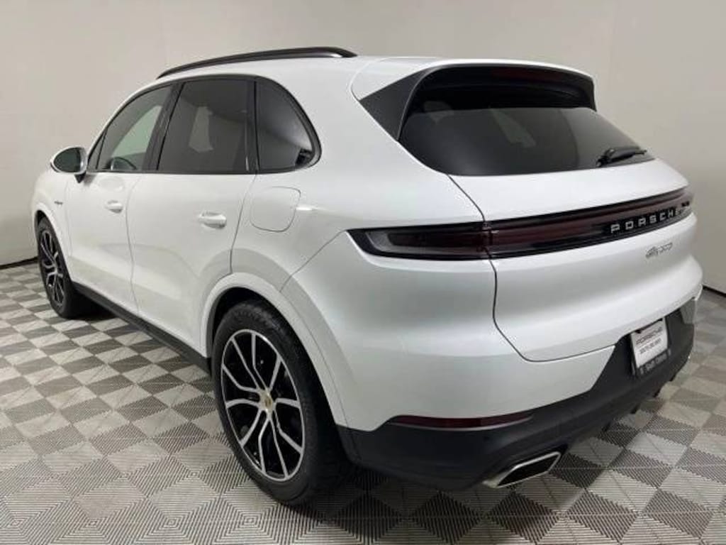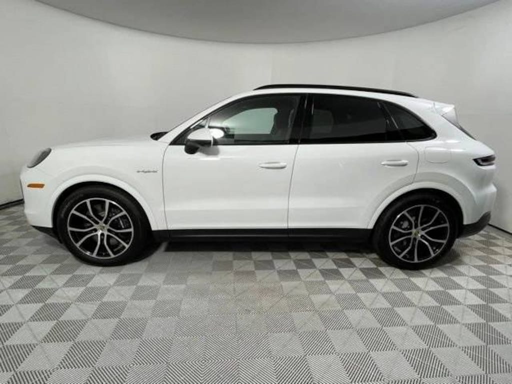 Certified. White 2024 Porsche Cayenne E-Hybrid 3.0L V6 Plug-In Hybrid Turbocharged 8-Speed Automatic with Tiptronic AWD Panoramic Roof System 4A4 Heated Seats (Rear) 9VL BOSE Surround Sound-System QQ1 Ambient Lighting PY3 Porsche InnoDrive incl. Adaptive Cruise Control (ACC) and Active Lane Keep Assist (ALK) $1,320 3S2 Roof Rails in Black Aluminum Finish $830 QJ4 Window Trim in High Gloss Black $400 1BK Adaptive Air Suspension incl. Porsche Active Suspension Management (PASM) $2,390 1P7 Porsche Dynamic Chassis Control (PDCC) $3,590 0N5 Rear Axle Steering $1,280 1PD Locking Wheel Bolts $60 43I 21" Exclusive Design Wheels in High Gloss Black $4,390 Q2J Power Seats (14-way) with Comfort Memory $1,290 2PJ Heated GT Sport Steering Wheel in Leather $590 4D3 Ventilated Seats (Front) $850 KA6 Surround View $830 GZ2 Soft Close Doors $720 2V3 Air Quality System $460 3Y7 Power Sunblind for Rear Side Windows $650, 3.0L V6 Plug-In Hybrid Turbocharged, 14-Way Power Seats w/Comfort Memory, Adaptive Air Suspension, Adaptive Cruise Control, Air Quality System, Ambient Lighting, BOSE Surround Sound System, Front Ventilated Seats, Heated GT Sport Steering Wheel in Leather, Locking Wheel Bolts, Panoramic Roof System, Porsche Dynamic Chassis Control, Power Sunblind for Rear Side Windows, Premium Package, Rear Axle Steering, Rear Heated Seats, Roof Rails in Black Aluminum Finish, Soft Close Doors, Surround View, Wheels: 21" Exclusive Design in High Gloss Black, Window Trim in High Gloss Black.