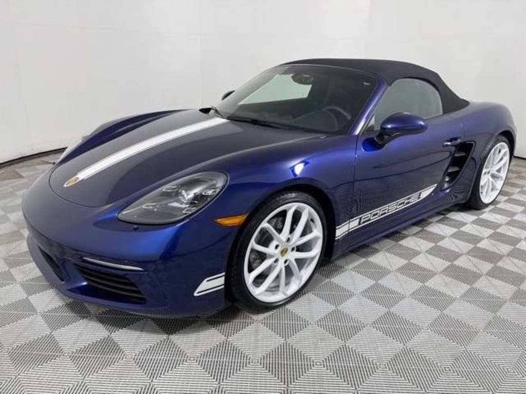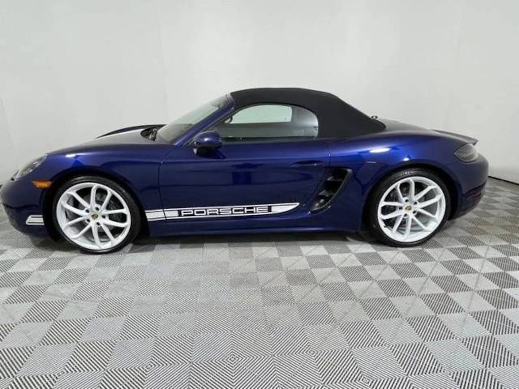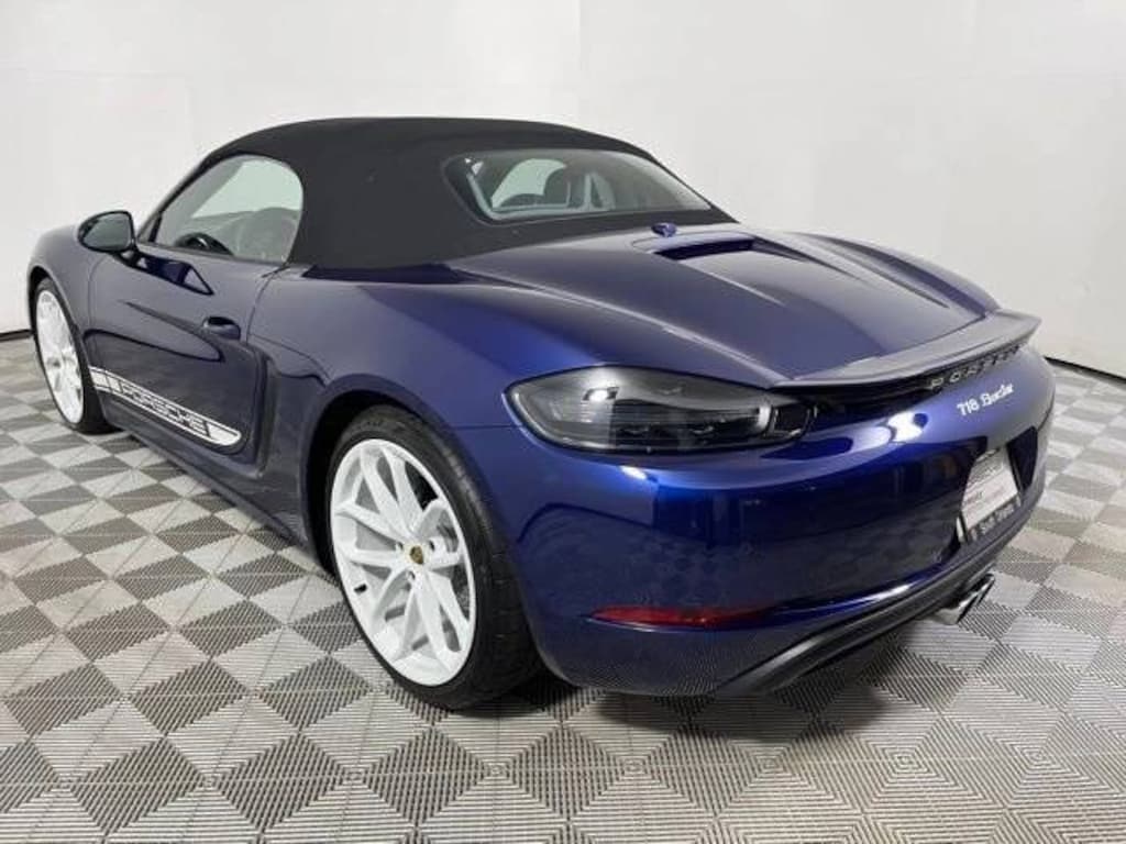 Certified. Gentian Blue Metallic 2025 Porsche 718 Boxster STYLE EDITION 2.0L Turbocharged 7-Speed Porsche Doppelkupplung (PDK) RWD P9J Premium Package $2,170 541 Ventilated Seats 715 Power Folding Exterior Mirrors incl. Courtesy Lighting 457 Lane Change Assist (LCA) 625 Porsche Entry & Drive 630 Light Design Package 581 Luggage Net in Passenger Footwell KY1 718 Style Edition Package in White XUB Headlight Cleaning System Covers Painted in Exterior Color $300 491 Model Designation on Rear in High Gloss White ATS Exterior Decals in White 475 Porsche Active Suspension Management (PASM) (Lowered 10 mm) $1,790 220 Porsche Torque Vectoring (PTV) with Mechanically Locking Differential $1,330 QR5 Sport Chrono Package $2,610 XLS Sport Tailpipes in Silver 341 Wheels Painted in High Gloss White P04 Sport Seats Plus (2-way) $810 858 GT Sport Steering Wheel in Leather $320 P40 Navigation including Porsche Connect $2,310 9VL BOSE Surround Sound System $990 XXP Clear Taillights $730 583 Smoking Package, 2-Way Sport Seats, ABS brakes, Alloy wheels, BOSE Surround Sound System, Clear Taillights, Electronic Stability Control, Front dual zone A/C, GT Sport Steering Wheel in Leather, Headlight Cleaning Sys Covers in Exterior Color, Heated door mirrors, Heated front seats, Illuminated entry, Low tire pressure warning, Navigation w/Porsche Connect, Porsche Active Suspension Management System, Porsche Communication Management, Porsche Torque Vectoring, Remote keyless entry, Smoking Package, Sport Chrono Package, Sport Tailpipes in Silver, Standard Leather Seat Trim, Traction control.