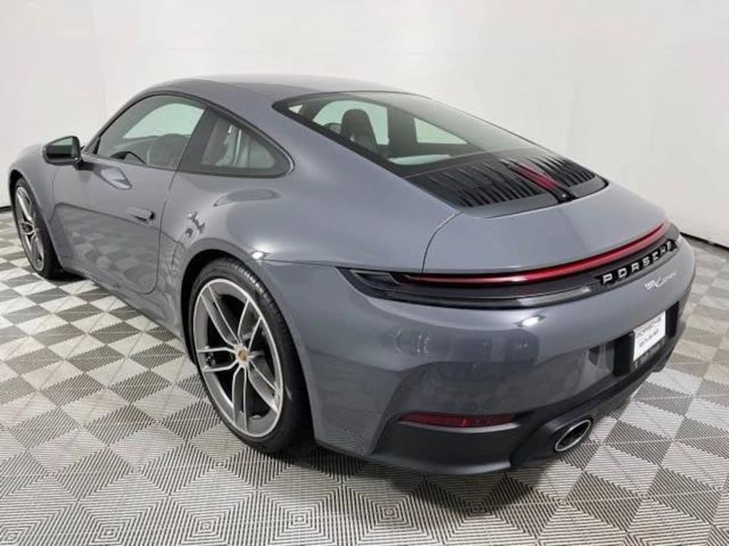 Certified. Slate Grey Neo 2025 Porsche 911 Carrera 3.0L H6 Turbocharged DOHC 24V LEV3-ULEV70 388hp 8-Speed Porsche Doppelkupplung (PDK) RWD P3K Premium Package $5,240 4D3 Ventilated Seats (Front) QE3 Storage Net in Passenger Footwell 9VL BOSE® Surround Sound System 2V4 Ionizer FT3 Surround View with Active Parking Support 7Y8 Lane Change Assist (LCA) 8T3 Adaptive Cruise Control (ACC) 8LH Sport Chrono Package $2,400 0P8 Sport Exhaust System incl. Tailpipes in Silver $2,960 0I2 Extended Range Fuel Tank (22.1 gal.) $230 59D 20"/21" Carrera Exclusive Design Wheels $3,820 Q1J Adaptive Sport Seats Plus (18-way) with Memory Package $3,470 3UG Rear Seats, 18-Way Adaptive Sport Seats Plus w/Memory Package, Extended Range 22.1 Gallon Fuel Tank, Rear Seats, Sport Chrono Package, Sport Exhaust System w/Tailpipes in Silver, Wheels: 20" Fr/21" Rr Carrera Exclusive Design.
