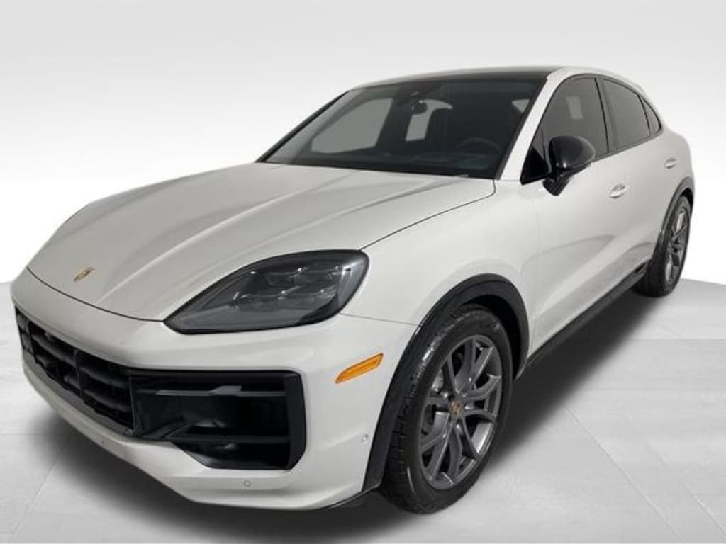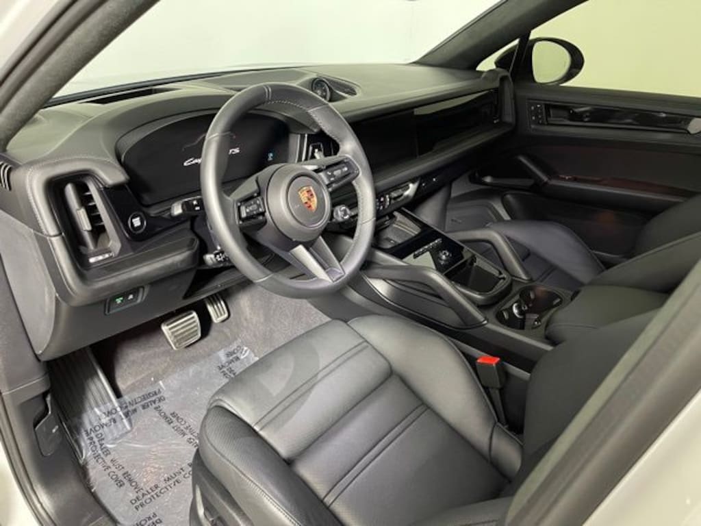 Certified. CARFAX One-Owner. Chalk 2025 Porsche Cayenne Coupe GTS V8 8-Speed Automatic with Tiptronic AWD AV Leather Interior in Black 3H Chalk $2,840 5J9 Roof Spoiler in High Gloss Black $560 6FH Exterior Mirrors Painted in High Gloss Black $660 0NC "PORSCHE" Logo and Model Designation on Rear in High Gloss Black 2W6 Exclusive Design Fuel Cap $160 6F0 Deletion of Side Logo Decals 0N5 Rear Axle Steering $1,280 8LC Sport Chrono Package with Compass Display 1ZE Brake Calipers in High Gloss Black $910 V61 21" Cayenne Exclusive Design Wheels in Vesuvius Grey $1,640 2PJ Heated GT Sport Steering Wheel in Leather with Twelve O'Clock marker in Black 5ZF Porsche Crest on Headrests (Front and Rear) $600 Q1J Adaptive Sport Seats Plus (18-way) with Comfort Memory $1,720 3NS Rear Comfort Seats (2+1) 4D3 Ventilated Seats (Front) $850 VT9 Door-Sill Guards in Black Brushed Aluminum, Illuminated $730 YGZ Fixed Luggage Compartment Cover in Leather - Black $850 FC1 Preparation for Exclusive Order KS1 Head-Up Display $1,490 9JB Smoking Package PV3 Adaptive Cruise Control incl. Lane Keep Assist (LKA) $1,430, Heated GT Sport Steering Wheel in Leather with Twelve O'Clock marker in Black, 18-Way Adaptive Sport Seats Plus w/Comfort Memory, Adaptive Cruise Control w/Lane Keep Assist (LKA), Brake Calipers in High Gloss Black, Deletion of Side Logo Decals, Exclusive Design Fuel Cap, Exterior Mirrors Painted in High Gloss Black, Fixed Luggage Compartment Cover in Leather, Front Ventilated Seats, Head-Up Display, Heated GT Sport Steering Wheel in Leather, Illuminated Door-Sill Guards in Brushed Aluminum, Porsche Crest on Front & Rear Headrests, Porsche Logo & Model Designation on Rear in Black, Porsche Logo on Rear in High Gloss Black, Rear Axle Steering, Rear Comfort Seats (2+1), Roof Spoiler in High Gloss Black, Smoking Package, Sport Chrono Package w/Compass Display, Wheels: 21" Cayenne Turbo Design in Vesuvius Grey.