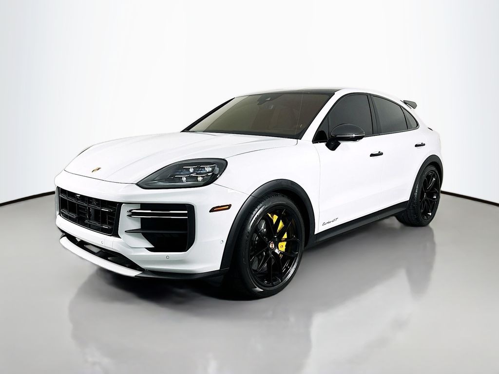 Certified. Recent Arrival! CARFAX One-Owner. Front PPF Carrara White Metallic 2026 Porsche Cayenne Coupe Turbo GT V8 8-Speed Automatic with Tiptronic AWD Option Code Description Price (USD) 9YBCP1 Cayenne Turbo GT $210,600 66 GT Interior Package with Deviated Stitching in Deep Sea Blue 2Y Carrara White Metallic 0NC "PORSCHE" Logo and Model Designation on Rear in High Gloss Black 6JA Door Handles in High Gloss Black $360 YMT Model Designation on Doors in Black $300 CI9 22" GT Design Wheels in Satin Black $620 Q1J Adaptive Sport Seats Plus (18-way) with Comfort Memory UP3 Sport Chrono Stopwatch and Digital Tachometer in White $650 1XR Heated GT Sport Steering Wheel in Race-Tex with Trim in Carbon Fiber $700 4D3 Ventilated Seats (Front) $870 6E3 Center Console Armrest with Model Designation $480 AH1 Interior Accents in Deep Sea Blue $660 VT9 Door-Sill Guards in Black Brushed Aluminum, Illuminated 9VJ Burmester® 3D High-End Surround Sound-System $5,940 FC1 Preparation for Exclusive Order 8SI Exclusive Design Taillights $1,160 UD1 Under Door Puddle Light Projectors $400 VW6 Thermally & Noise Insulated Glass (Front and Rear) $1,190 KS1 Head-Up Display $1,520 9AE 4-Zone Climate Control $1,020 2V3 Air Quality System $480 PY3 Porsche InnoDrive incl. Adaptive Cruise Control (ACC) and Active Lane Keep Assist (ALK) $2,810, 18-Way Adaptive Sport Seats Plus with Comfort Memory, 4-Zone Climate Control, Air Quality System, Burmester 3D High-End Surround Sound-System, Center Console Armrest with Model Designation, Door Handles in High Gloss Black, Exclusive Design Taillights, Front Ventilated Seats, Head-Up Display, Heated GT Sport Steering Wheel in Race-Tex with Carbon Fiber, Illuminated Door-Sill Guards in Black Brushed Aluminum, Interior Accents in Deep Sea Blue, Model Designation on Doors in Black, Porsche InnoDrive with Adaptive Cruise Control (ACC) and Active Lane Keep (ALK), Porsche Logo in High Gloss Black with Model Designation Delete, Sport Chrono Stopwatch and Digital Tachometer in White, Thermally and Noise Insulated Front Glass, Under Door Puddle Light Projectors, Wheels: 22" GT Design in Satin Black.