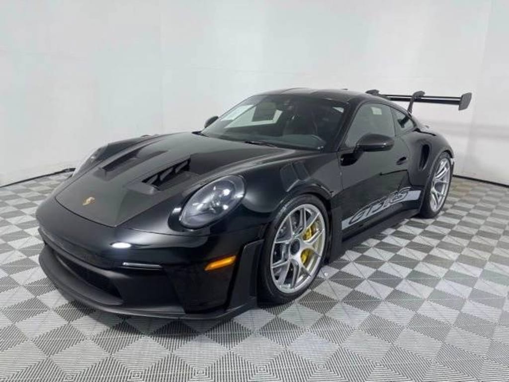 Certified. Black 2024 Porsche 911 GT3 RS 4.0L H6 DOHC 24V LEV3-LEV160 518hp 7-Speed Porsche Doppelkupplung (PDK) RWD 42 Leather/Race-Tex Interior in Black with GT Silver Stitching i.c.w. Weissach Package $4,730 A1 Black 04I Weissach Package $33,520 AME Accent Package Logos $840 2UH Front Axle Lift System $3,670 1LQ Porsche Ceramic Composite Brakes (PCCB) with Calipers in Yellow $9,210 0I2 Extended Range Fuel Tank (23.7 gal.) $230 1NR Wheels Painted in Silver 56R 20"/21" GT3 RS Forged Lightweight Magnesium Wheels 6RD Deviated Stitching Interior Package $3,650 Q1J Adaptive Sport Seats Plus (18-way) FZ4 Seat Belts in Racing Yellow $360 1MI Steering Wheel and Gear Lever in Black Leather 5DC Door Pull Loops in Black QE1 Luggage Net in Passenger Footwell 6DK Sun Visors in Race-Tex $590 9VL BOSE Surround Sound System $1,600 QU4 Deletion of SiriusXM Antenna 6F9 Steering Code for Accent Package Decals 24901 Dashboard with Deviated Stitching 24905 Rear Side Panel with Deviated Stitching (Coupe Only) 24906 Center Console Lid with Deviated Stitching 24907 Knee Pad with Deviated Stitching 25889 Door Panel with Deviated Stitching 00480 Color Selection for Stitching in Deviated Color 8JT LED Headlights in Black incl. Porsche Dynamic Light System (PDLS) $850 8VH Exclusive Design Taillights $990 P14 Auto-Dimming Mirrors with Integrated Rain Sensor $700 7X1 ParkAssist (Rear) $610 8U7 Preparation for Porsche Dashcam (Front and Rear) $130 QQ2 Ambient Lighting $580, Accent Package Logos, Ambient Lighting, Auto-Dimming Mirrors w/Integrated Rain Sensor, BOSE Surround Sound System, Deviated Stitching Interior Package, Exclusive Design Taillights, Extended Range 23.7 Gallon Fuel Tank, Front Axle Lift System, LED Headlights in Black w/PDLS, ParkAssist Rear, Porsche Ceramic Composite Brakes (PCCB) in Yellow, Preparation for Front & Rear Porsche Dashcam, Seat Belts in Racing Yellow, Sun Visors in Race-Tex, Weissach Package, Wheels: 20" Fr/21" Rr GT3 RS Forged Ltwt Magnesium.