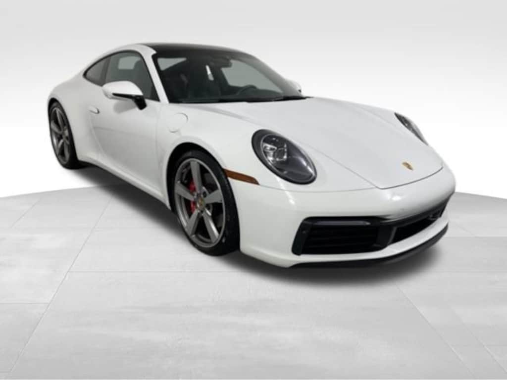 Certified. White 2024 Porsche 911 Carrera S 3.0L H6 Turbocharged DOHC 24V LEV3-ULEV70 443hp 8-Speed Porsche Doppelkupplung (PDK) RWD P3R Premium Package $5,350 4D3 Ventilated Seats (Front) QE1 Storage Package 9VL BOSE® Surround Sound System 8IU LED-Matrix Design Headlights incl. Porsche Dynamic Light System Plus (PDLS+) $2,000 6XV Power Folding Exterior Mirrors 7Y1 Lane Change Assist (LCA) KA6 Surround View QQ2 Ambient Lighting 3FE Electric Slide/Tilt Sunroof in Glass $2,000 6FJ Exterior Mirror Lower Trim in Exterior Color and Base in High Gloss Black $660 QJ4 Window Trim in High Gloss Black $510 1BV PASM Sport Suspension (Lowered 10mm) $1,020 1P7 Porsche Dynamic Chassis Control (PDCC) $3,170 8LH Sport Chrono Package $2,790 0P8 Sport Exhaust System incl. Tailpipes in Silver $2,950 1N3 Power Steering Plus $280 0N5 Rear Axle Steering $2,090 0I2 Extended Range Fuel Tank (23.7 gal.) $230 46M 20"/21" Carrera Exclusive Design Wheels $2,630 3J7 Porsche Crest on Headrests (Front) $290 Q1J Adaptive Sport Seats Plus (18-way) with Memory Package $3,260 2FS GT Sport Steering Wheel in Leather $330 FI8 Seat Belts in Chalk $540 5MH Interior Trim Inlays in Matte Carbon Fiber $2,100 3HB 930 Leather Package $1,490, 20"/21" Carrera Exclusive Design Wheels, 18-Way Adaptive Sport Seats Plus w/Memory Package, 930 Leather Package, Electric Slide/Tilt Glass Sunroof, Extended Range 23.7 Gallon Fuel Tank, Exterior Mirror Lower Trim in Exterior Color, GT Sport Steering Wheel in Leather, Interior Trim Inlays in Matte Carbon Fiber, LED-Matrix Design Headlights w/PDLS+, Lthr Seat Trim w/Lthr Interior & Chalk Stitching, PASM Sport Suspension (Lowered 10mm), Porsche Crest on Front Headrests, Porsche Dynamic Chassis Control, Power Steering Plus, Rear Axle Steering, Seat Belts in Chalk, Sport Chrono Package, Sport Exhaust System w/Tailpipes in Silver, Window Trim in High Gloss Black.