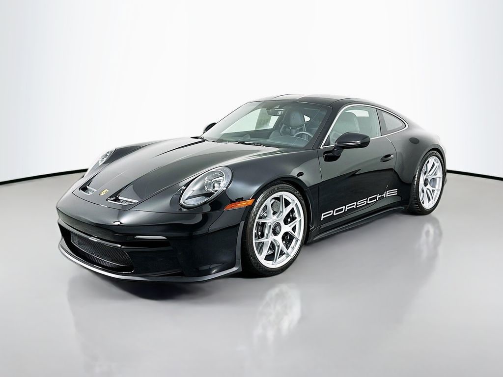 Black 2024 Porsche 911 S/T RWD 6-Speed Manual 4.0L H6 DOHC 24V LEV3-LEV160 518hp SG Leather Interior in Black/GT Silver A1 Black 2UH Front Axle Lift System $3,670 8LH Chrono Package $310 0I2 Extended Range Fuel Tank (23.7 gal.) $230 APP Individual Limitation Number 9VL BOSE® Surround Sound System $1,600 S0L Press Vehicle 8IU LED-Matrix Design Headlights incl. Porsche Dynamic Light System Plus (PDLS+) $3,270 8VH Exclusive Design Taillights $990 P14 Auto-Dimming Mirrors with Integrated Rain Sensor $700 7X1 ParkAssist (Rear) $610, ABS brakes, Auto-Dimming Mirrors w/Integrated Rain Sensor, BOSE Surround Sound System, Chrono Package, Electronic Stability Control, Exclusive Design Taillights, Extended Range 23.7 Gallon Fuel Tank, Front Axle Lift System, Front dual zone A/C, Heated door mirrors, Illuminated entry, Individual Limitation Number, LED-Matrix Design Headlights w/PDLS+, Low tire pressure warning, ParkAssist Rear, Porsche Communication Management, Remote keyless entry, Traction control.