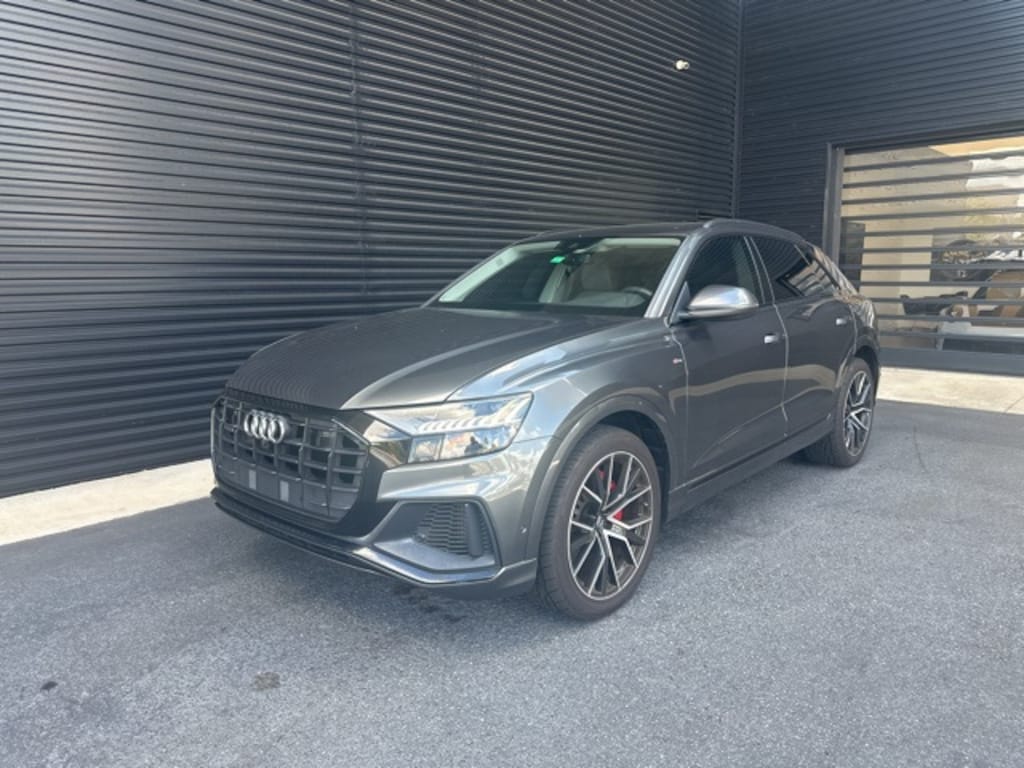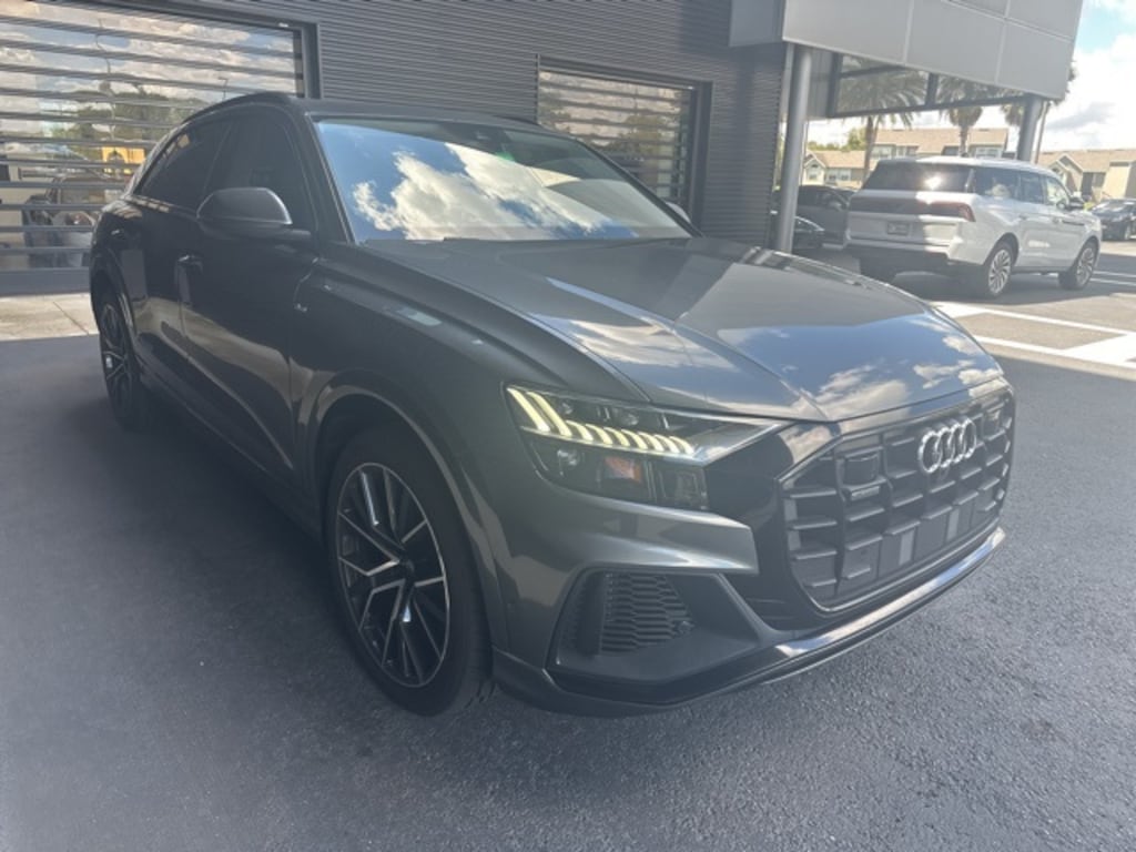 Recent Arrival! Daytona Gray Pearl Effect 2020 Audi Q8 55 Premium Plus quattro 3.0L V6 Turbocharged DOHC 24V LEV3-ULEV125 335hp 8-Speed Automatic with Tiptronic quattro [6Y6Y] Daytona Gray Pearl Effect $595 [AD] Pando Gray, Leather Seating Surfaces $0 [98A] Driver Assistance Package $1,750 [PQD] S Line Style Package S Line Exterior Package S line Front & Rear Bumpers S line Side Sills S line Illuminated Door Sills S line Fender Badges Wheels: 21" 5-W-Spoke-Design Bi-color $750 [98P] S Line Plus Package Tires: 285/45R22 All-Season Red Painted Brake Calipers Wheels: 22" Audi Sport 5-V-Spoke Star Design Black Black Optic Exterior Kit window surrounds Black Roof Rails & Mask Black Front & Rear Bumpers $2,250 [PSS] Adaptive Chassis Package 4-Wheel-Steering Adaptive Air Suspension $2,750 [PAW] Cold Weather Package Heated Rear Seats Heated Steering Wheel $600.