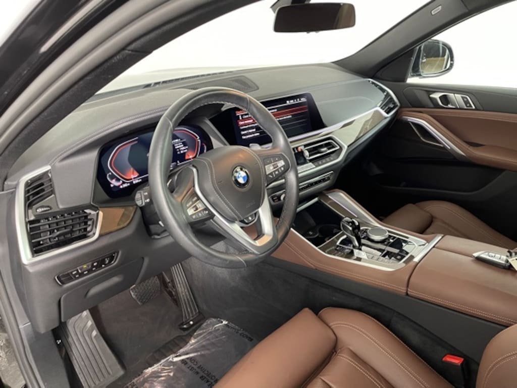 CARFAX One-Owner. Jet Black 2022 BMW X6 xDrive40i 3.0L I6 DOHC 24V Turbocharged 8-Speed Automatic Sport AWD [1XB] Wheels: 21" Y Spoke Orbit Grey (Style 744) 21" x 9.5" front and 21" x 10" rear Increased Top Speed Limiter Tires: 275/40R21 Fr & 315/35R21 Rr Performance $950 [668] Jet Black$550 [MCHF] Coffee, Vernasca Leather Upholstery$0 [4KP] Brown Metallic Ash Grain Wood Trim$0 [4HB] Heated Front Seats Armrests & Steering Wheel$250, Coffee w/Vernasca Leather Upholstery.
